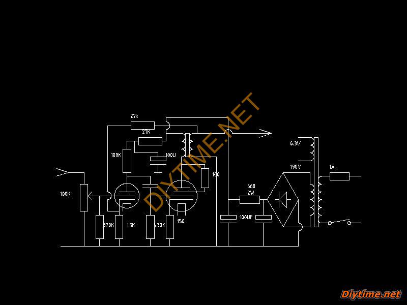 由6F3的三极管部分组成一个标准的共阴放大器,五极功率管部分接成三极管状态,27K电阻和1.5K电阻构成电压串联负反馈。