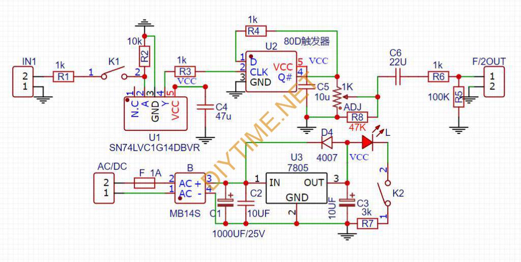 最后再强调一下输出信号频率为输入的一半!