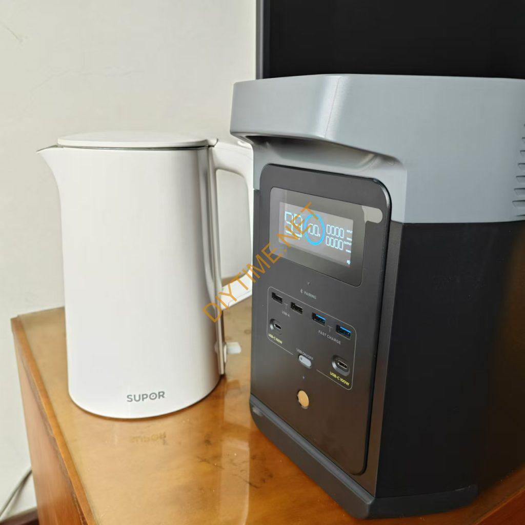 拿一个supor电热水壶做负载试验,容量1.7L,功率1.5KW.先将移动电源剩余电量用尽,然后使用市电快充,耗时80多分钟冲满,和标称充满时间基本一致。继续用电热水壶连续烧水。烧完6壶水后,电源用到尽。每壶水烧开时间0.1小时左右,总耗电量接近1度。和移动电源标称容量基本相符。使用一台英德尔T20PRO做负载,对移动电源点烟器输出测试,工作正常。使用手机对移动电源各个USB输出口充电测试均正常。