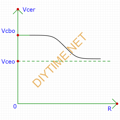Vceo是晶体三极管基极开路时(R为无穷大),集电极和发射极之间的击穿电压。Vcbo是晶体三极管集电极和基极之间的击穿电压,也就是基极和发射极短路时(R为0),集电极和发射极之间的击穿电压。Vcer为三极管基极和发射极间外接电阻R时集电极和发射极之间的击穿电压。数值上Vcbo>Vcer>Vceo。Vceo为最小是由于基极开路,Icb的变化经放大形成集电极电流的激增造成。当R在0到无穷大之间变化时,Vcer的数值在Vcbo,Vceo之间变化。